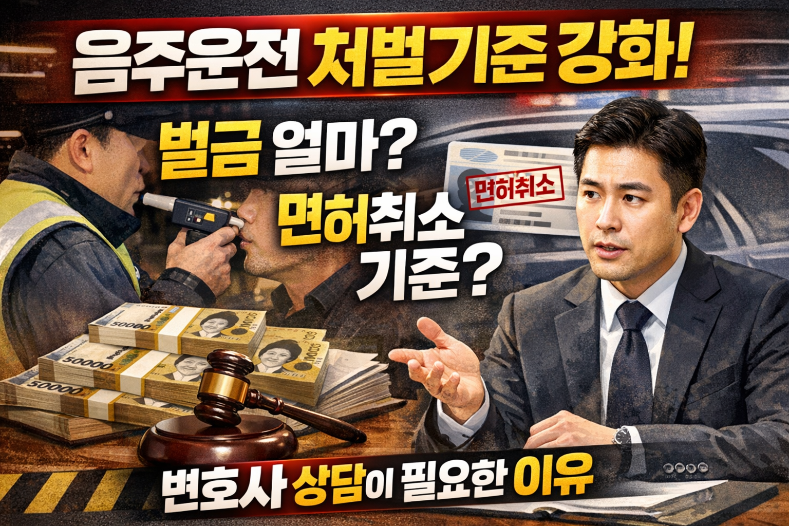 최근 음주운전 처벌기준 강화로 인해 단속에 적발되는 순간 벌금, 면허취소, 형사처벌까지 동시에 고민해야 하는 상황이 많아졌습니다. 특히 초범이라도 예외 없이 처벌 대상이 되면서 음주운전 변호사 상담을 찾는 사례도 급증하고 있습니다.