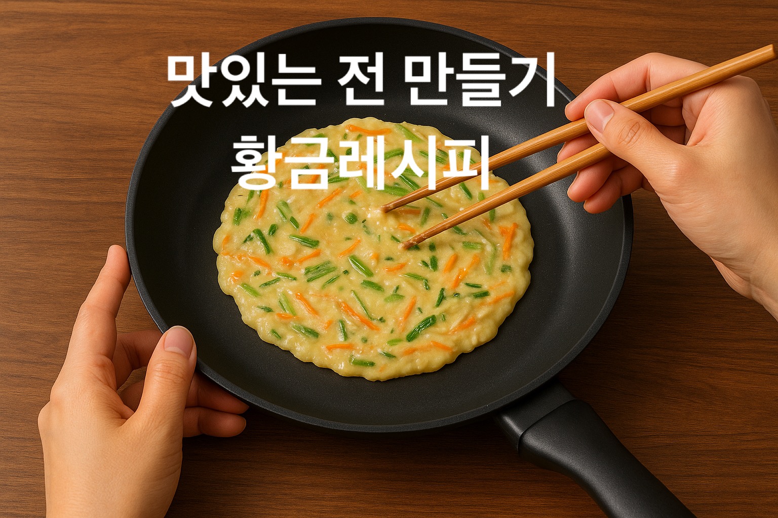 - 팬에 기름을 충분히 두르고 중불로 천천히 부쳐야 속이 촉촉하게 익습니다.
